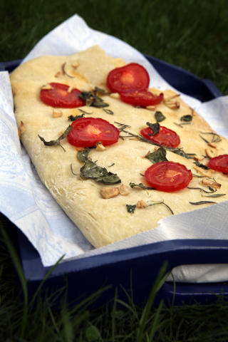 FOCACCIA MED TOMAT, HVITLØK OG URTER