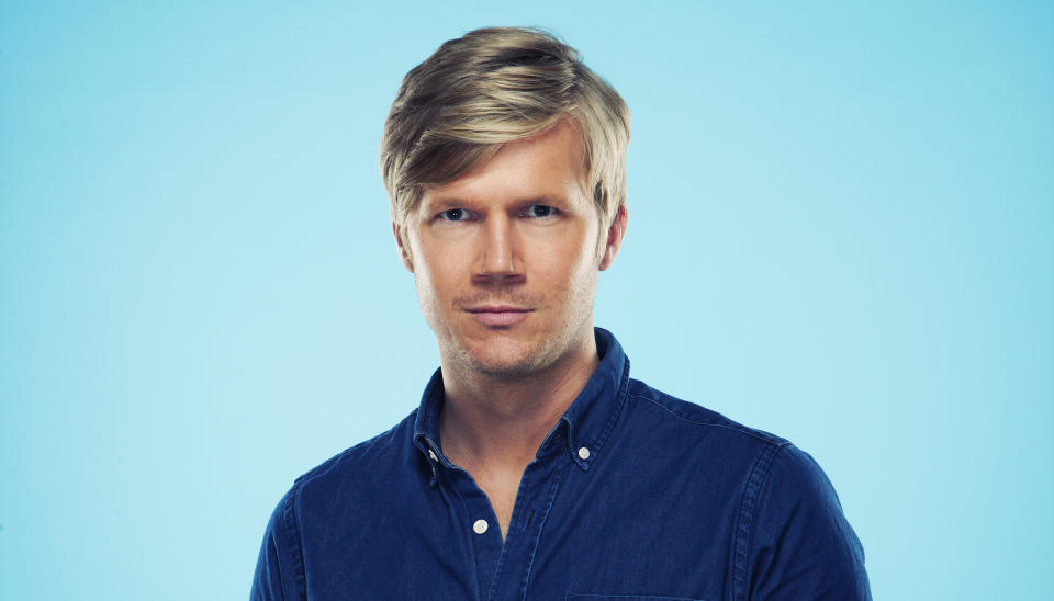 Men etter at animerte glassbiter fra bilkrasjen i en neo-Leone-Tarantino-inspirert vignett har lagt seg, står programlederdebutant Vegard Larsen barskblid, fångad av en Oslo-vind ved Filmens hus i Dronningens gate.