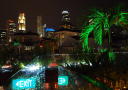 SKYHAGE: I skumringen er hagen på toppen av kjøpesenteret Esplanade et fint sted å se skyskraperne lyse opp. Foto: JOHN ARNE GUNDERSEN