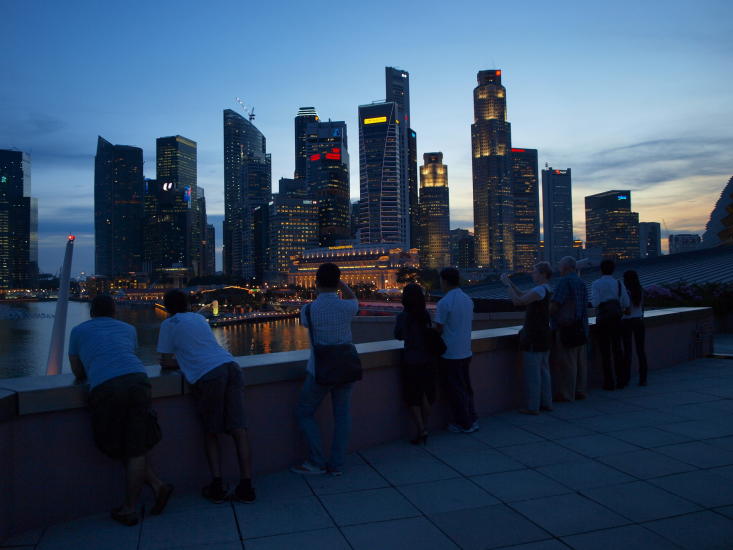 - Åh, det er fantastisk, sier hun. Blant svette turister med kamera på magen, skuer en ung kvinne utover Singapore. Høye skyskrapere, noen hvite, andre beige og turkise, alle med svarte, livløse vinduer.