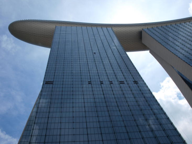 Marina Bay Sands åpnet i 2010, og består av tre tårn med 2500 hotellrom, et av verdens største kasinoer i kjelleren, og på toppen av det hele en gigantisk takterrasse, eller Sky Park som de kaller det, som raskt har blitt et av de mest populære reisemålene i Singapore.