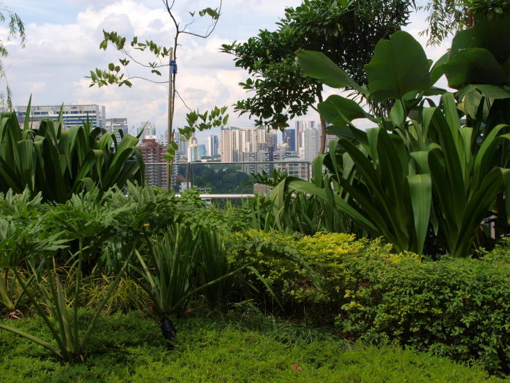 Om man trenger en pause fra på hektiske handlegata Orchard Road, kan man ta heisen opp til tolvte etasje på kjøpesenteret Orchard Central. Der ligger restauranter og en hage med en kunstig foss.