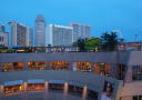 Svart senker kvelden seg, og vi står på taket til et kjøpesenter som heter Esplanade.