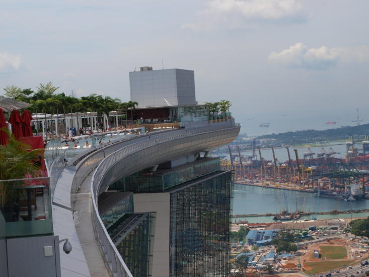 BASSENG MED UTSIKT: Man har god oversikt over Singapore fra solsengene på takterrassen til Marina Bay Sands. Foto: JOHN ARNE GUNDERSEN