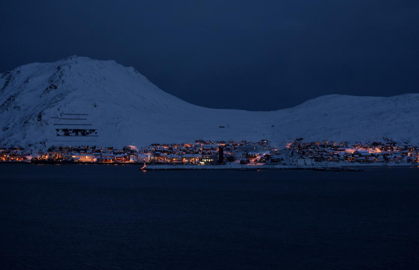 Men kveldsmørket var tett på nordkysten nord for Tromsø, og inn i Finnmark. Det lyste opp små tettsteder, umulig å si hvor.