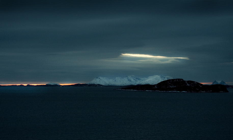 Da vi dro fra Salten var det dagslys i timer, selv om solen var bak fjellene det meste av tiden.