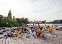 Et annet populært sommersted i Berlin er Arena Badeschiff. Her kan du bade i et basseng som holder 24 grader, og er senket ned i elva Spree.