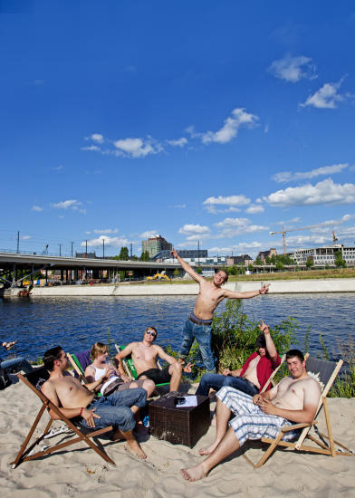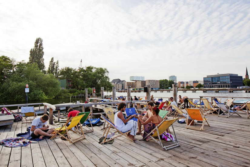 • Arena Badeschiff: Ligger øst i byen. Bar, klubb, strand og basseng senket ned i elva Spree. Nærmeste S-bahn-stopp er Treptower park.