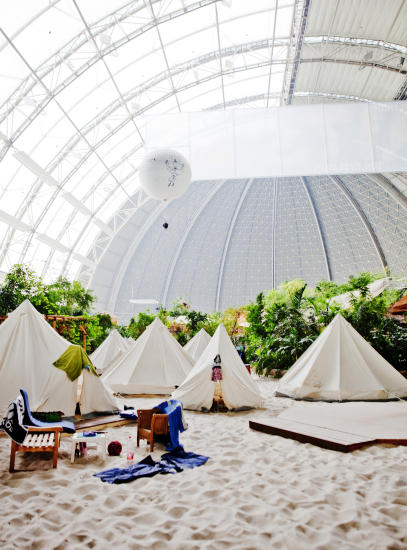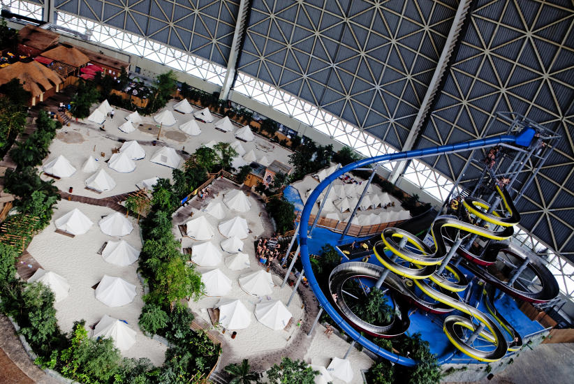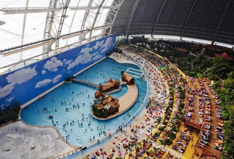 • Tropical Island: Ligger i Brand, 6 mil sørøst for Berlin, er 66 000 kvadratmeter stort, 107 meter høyt og 360 meter bredt. Åpent 365 dager i året, 24 timer i døgnet. 350 sengeplasser i telt og bungalower. Det er også mulig å tilbringe natta på en solseng eller på et medbrakt liggeunderlag.