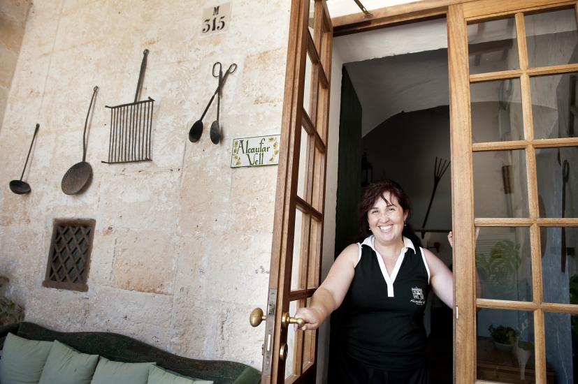 Hun står i døra og ønsker oss hjertelig velkommen til den herskapelige landhotellet Alcaufar Vell på Menorcas østside.