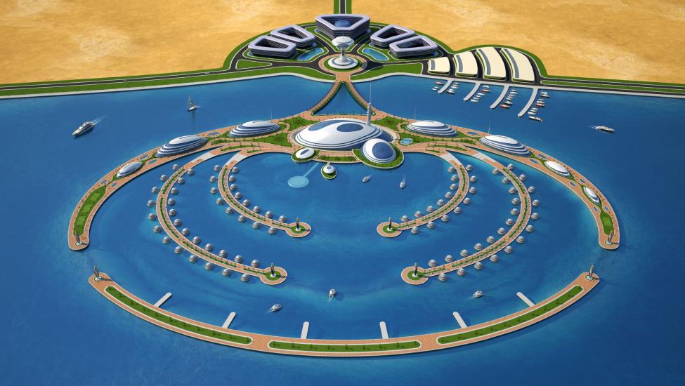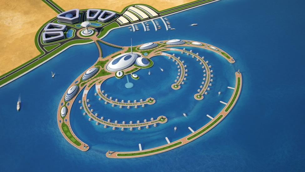 Det overrasker kanskje heller ingen at det flytende prosjektet innebærer både oljepenger, sjeiker og investeringer i mangemilliardersklassen.