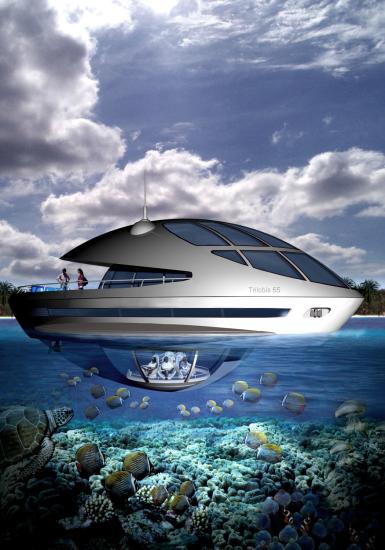 Tar du vannveien, foregår transporten via 20 meter lange yachter kalt Trilobis, som er utstyrt med hydrogenmotorer. Også disse har observatoriekuppel under vann.