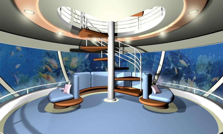For de som synes det blir litt vel mye undervannsaktiviteter, har Amphibious 1000 så klart også treningssenter, hager og utendørsteater med en scene som vender ut mot havet.