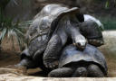 SKILPADDEMORO: Galapagosskilpadden Dirk på vei opp på sin yngre samboer Dolly, i innhegningen de deler i London Zoo. Det sies ingenting om det er kjærlighet i lufta, eller om Dirk rett og slett bare klatrer litt på skilpaddevis. Foto: ANDREW WINNING/REUTERS/SCANPIX