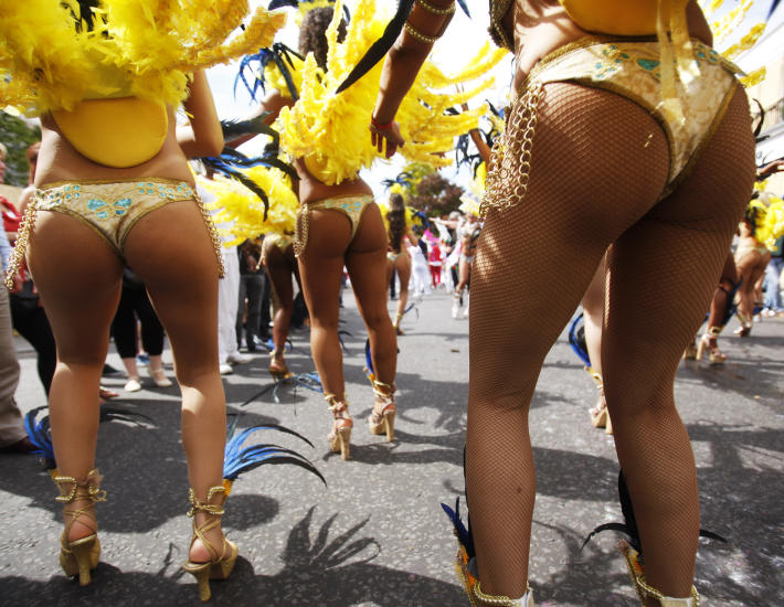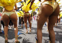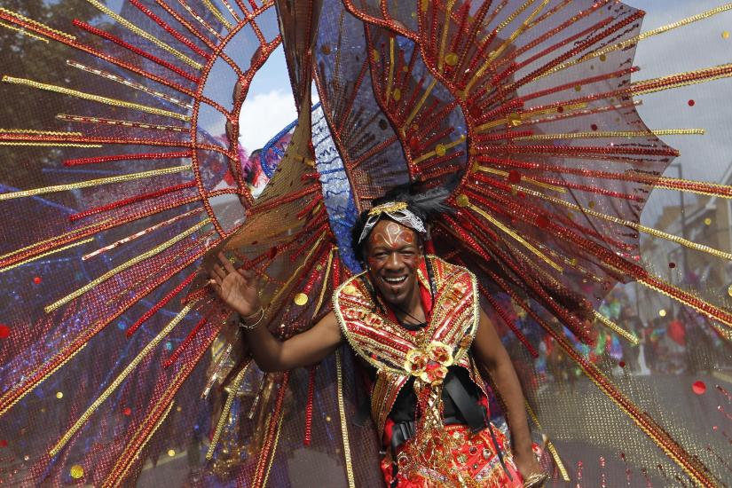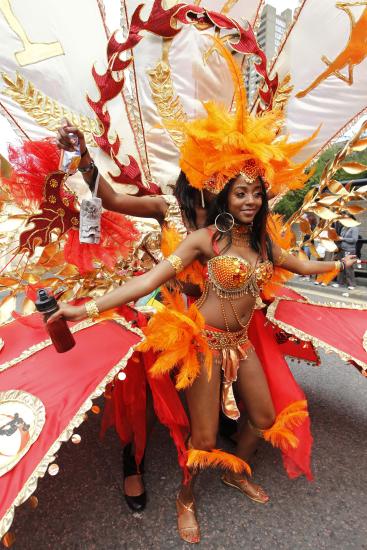 TO DAGER TIL ENDE: En av danserne i det årlige to dager lange karnevalet i Notting Hill i London. Det hele er en feiring av den karibiske kulturen, og årlig trekker rundt én million mennesker ut i gatene for å delta i den fargerike prosesjonen med musikere og dansere. Foto: TOBY MELVILLE/REUTERS/SCANPIX