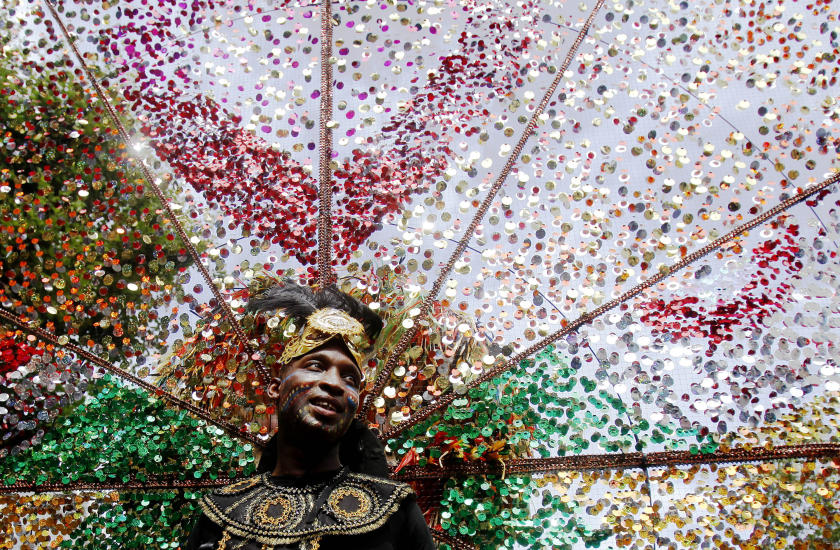 KARNEVAL: Fargerike dansere fylte gatene i det årlige Notting Hill-karnevalet i London søndag og mandag, i det som er den største gatefesten i Europa. Et rekordoppbud av polititjenestemenn sørget for at det ikke ble noen gjentakelse av opptøyene som rystet den britiske hovedstaden for tre uker siden. Det hele er ifølge Reuters en feiring av den karibiske kulturen, og årlig trekker rundt én million mennesker ut i gatene for å delta i den fargerike prosesjonen med musikere og dansere. Foto: OLIVIA HARRIS/REUTERS/SCANPIX