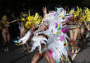 KARNEVAL: Fargerike dansere fylte gatene i det årlige Notting Hill-karnevalet i London søndag og mandag, i det som er den største gatefesten i Europa. Et rekordoppbud av polititjenestemenn sørget for at det ikke ble noen gjentakelse av opptøyene som rystet den britiske hovedstaden for tre uker siden. Det hele er ifølge Reuters en feiring av den karibiske kulturen, og årlig trekker rundt én million mennesker ut i gatene for å delta i den fargerike prosesjonen med musikere og dansere. Foto: CARL COURT/AFP/SCANPIX