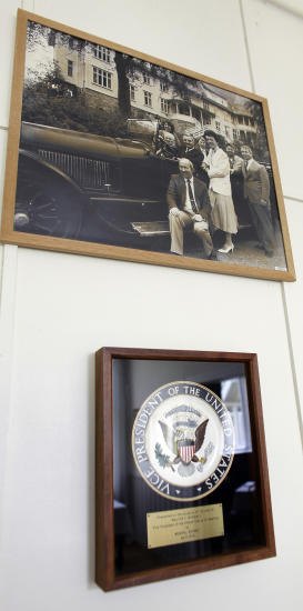 Keiser Wilhelm II har fått minnesmerke på en bauta utenfor. Mondale henger på en vegg ved spisesalen.