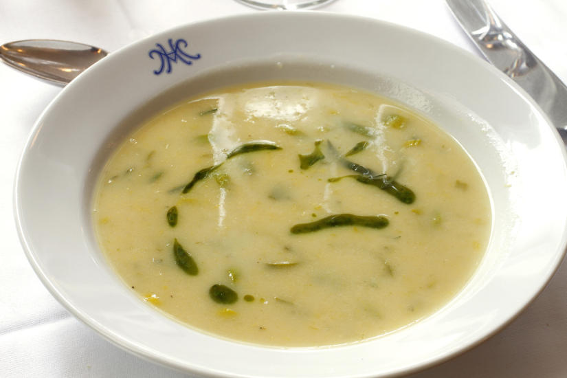 Først kommer det ørretpaté, fulgt av kremet purreløksuppe, lammestek og til slutt hotellets egen gallapudding - en fluffy fromasj med karamellsauslokk.