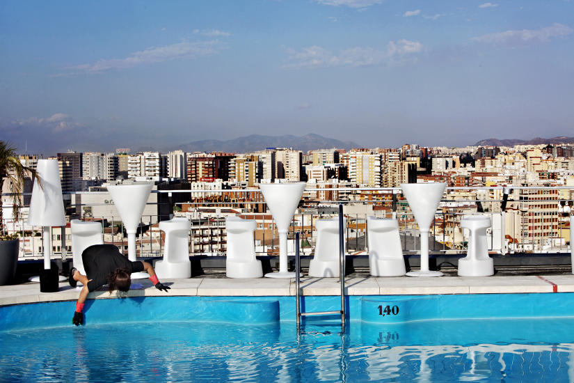 • AC Hotel Malaga Palacio, Cortina del Muelle 1. Gode høstpriser, takterrasse med super utsikt.• Hotel Molina Lario, calle Molina Lario, 20-22. Sentralt designhotell, takterrasse med basseng/bar.