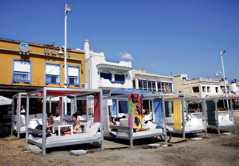 - Hvor ofte vi har sittet her? Å, nei, det vet vi ikke. Så ofte som mulig siden de fikk disse sengene i våres.Nerea Navarro (27) har tatt fri fra jobben på klesbutikken Zara i Torremolinos.
