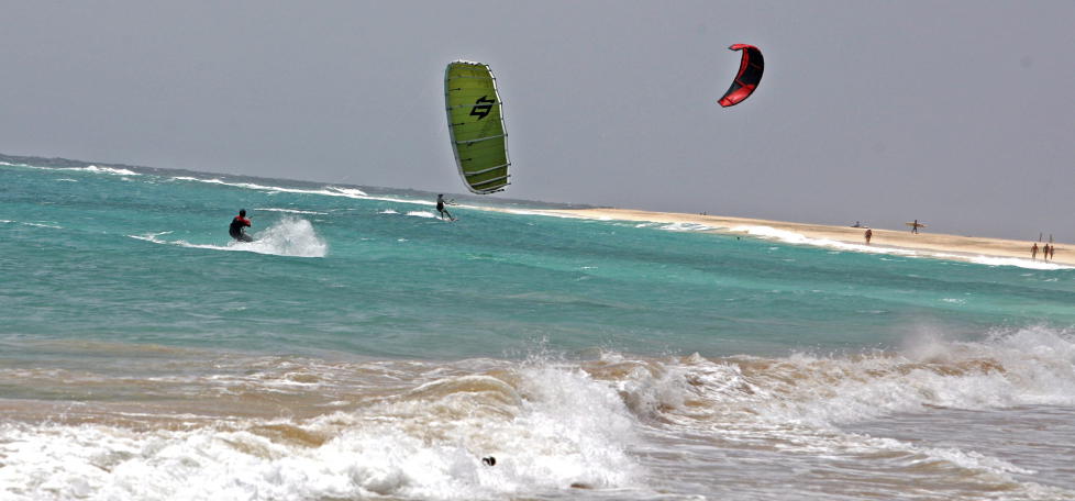 STRANDLIV: Kapp Verdes øyer byr på frodige, grønne landskap, vulkaner og ørken. Øya Sal har fantastiske strender, som frister både badegjester og kitere. Foto: EIVIND PEDERSEN