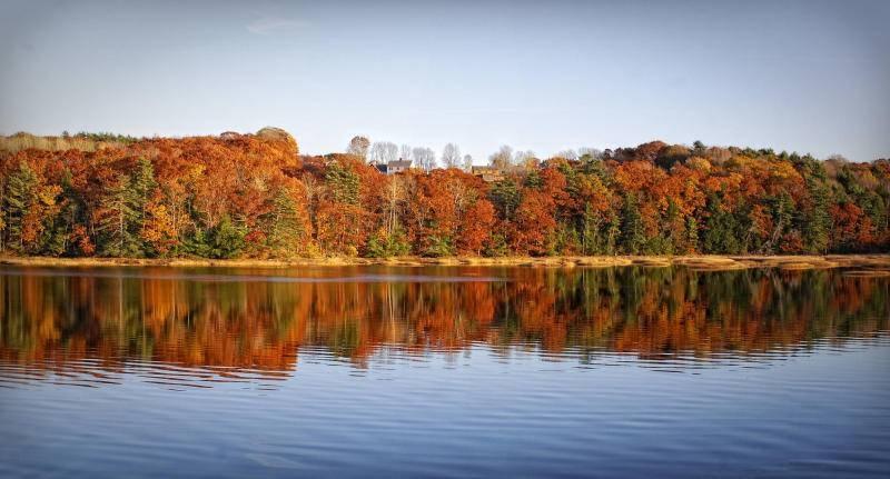 Her kan du leie en båt og nyt utsikten til den gamle kirken som ligger ved vannet i lys av spektakulære høstfarger.