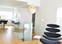 Særlig hvis du vil ha gjestene med på matlaging, og muligheter for å spise frokost ved kjøkkenbenken. På den måten blir kjøkkenet også noe skjermet for direkte innsyn. Høyere plassering av overskapene gir enn det som er vanlig, fører til gir et luftigere uttrykk. Glass på veggen over kjøkkenbenken skaper en glidende overgang til stua.