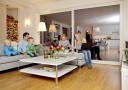 Overflatene på sittemøbler, bord og gulv bør være lette å holde rene i et rom som skal brukes mye.