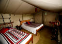 Vårt telt hadde egen utendørsdusj, vaskerom og utedo, samt en god dobbeltseng.