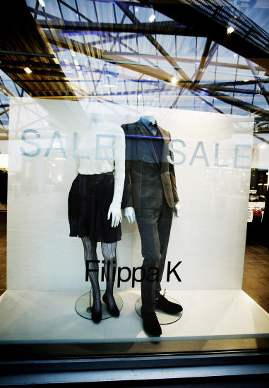 Han oppfordrer oss til å besøke Filippa K først. Der er dempet musikk og lyden av kleshengere som treffer stativer det eneste vi hører når vi tar Per på ordet og tropper opp hos Filippa K.- Vi har ikke noe valg. Vi må selge alt, sier butikksjef Madelen Persson.