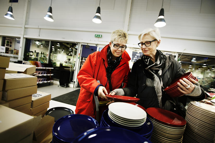Vi har passert de svenske jeansspesialistene Nudie og Acne, romantikerne Odd Molly og Noa Noa, finske Iittala med keramikk og glass til utenkelige priser, Filippa K med sin svenske skreddersøm, Fatboy på kjempesalg, Salmon sportsutstyr med alt fra alpinutstyr til pulsklokker, golfkøller som kan få Tutta til å gå bananas, samt en gigantisk butikk med spesielt fint krimskrams.