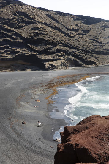 For å komme til El Golfo har vi tråkket et par timer på leide sykler gjennom det knudrete, koksgrå lavalandskapet som dominerer Lanzarote.