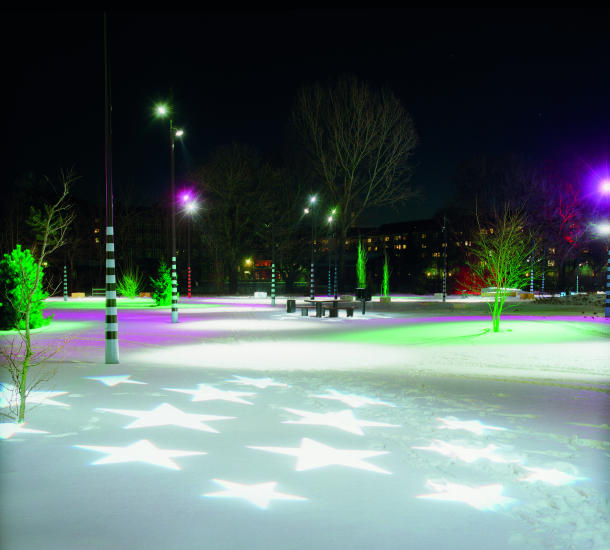 Om prosjektet: Det 3,5 hektar store området var mørkt, skittent og inngjerdet. Så ble den tidligere bussterminalen gjort om til park og lyssatt. Temaet er melkeveien, målet å sette i gang fantasien hos dem som passerer. Stig Andesson og arkitekten har ønsket å bringe historier inn i livet till brukerne, enten de løper, går eller sitter rolig på en benk. I parken finner du stjernebenker og lys i ulike farger, som representanter for mangfoldet av kulturer i området. Lyset gir også retning: skal du nordover, går du mot blått. Skal du mot sør, velger du rødt. Det meste er gjort enkelt og billig, som å male striper på lyktestolpene.