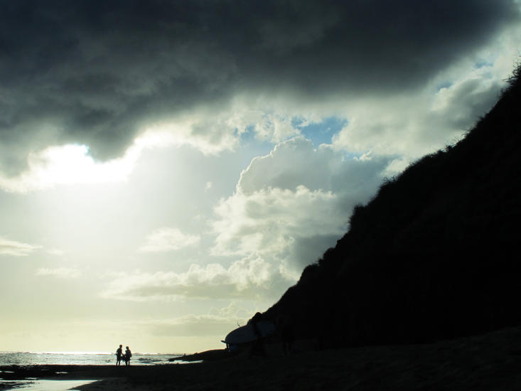 HALEIWA BEACH: Surfere i fantastisk sollys. Foto: CHARLOTTE SVERDRUP