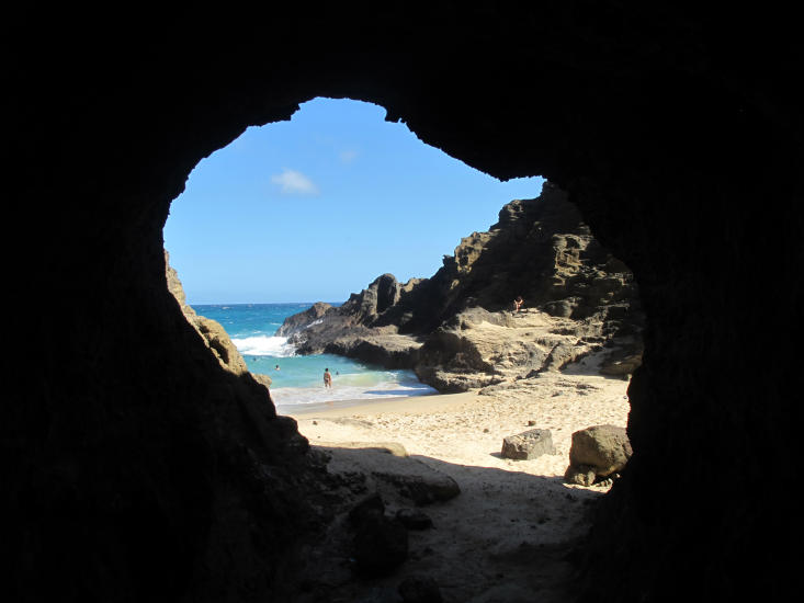 Fra stranda her kan du gå en time opp til toppen av det 150 000 år gamle krateret, og nyte utsikten til store deler av vestkysten av Oahu og Honolulu.