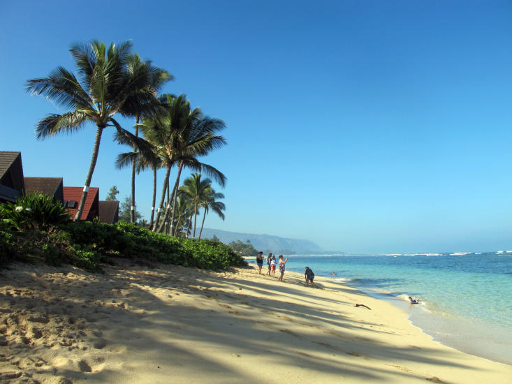 Det er ikke tettstedet Kailua med sine 36 000 innbyggere som frister mest. Fra Kailua følger vi skiltene mot på stranda, nærmere bestemt Lanikai Beach.