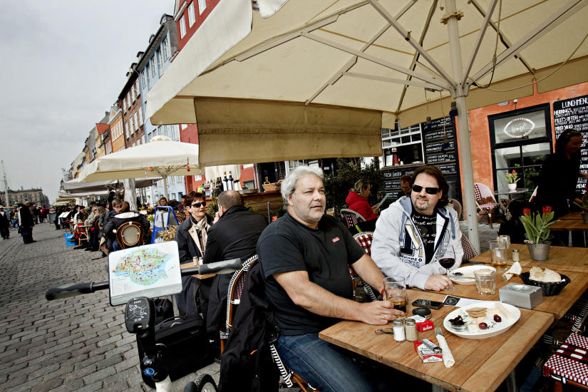 NYHAVN: Morten Vandli fra Gjøvik og Harald Mehus fra Sortland koser seg med noe godt å drikke på uteserveringen i Nyhavn. Fra Nyhavn kan du også ta en kanalbåt og få en guidet tur i byen fra sjøsiden. Foto: KRISTIAN RIDDER-NIELSEN