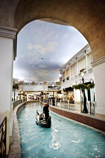 6. La deg frakte i gondol gjennom kjøpesenteret Villagio Mall.