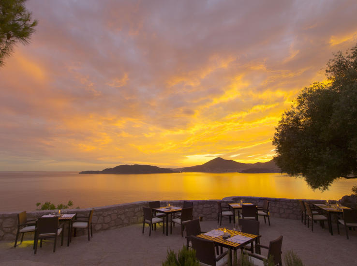 På øya finner du 50 rom og suiter i tradisjonelle røde taksteinsbygninger. Hotellet har også seks spahytter, et basseng med utsikt over Adriaterhavet og en rekke restauranter, barer og kafeer.
