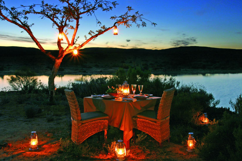 ROMANTISK MIDDAG: Med en flott beliggenhet og verdens beste mat, er alt klart for en romantisk middag for to. Foto: Bushman's Kloof