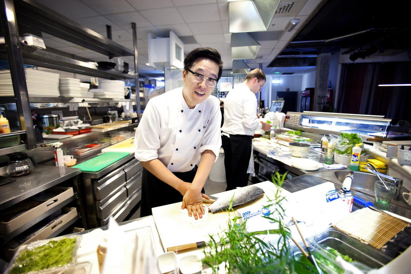 Lenger opp i byen merkes det at været er spesielt pent i dag. På sushirestauranten Food Asylum er det bare to av bordene som er okkupert.Men på kjøkkenet jobbes det iherdig med forberedelsene til det ventede middagsinnrykket noen timer seinere.