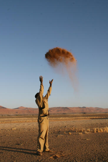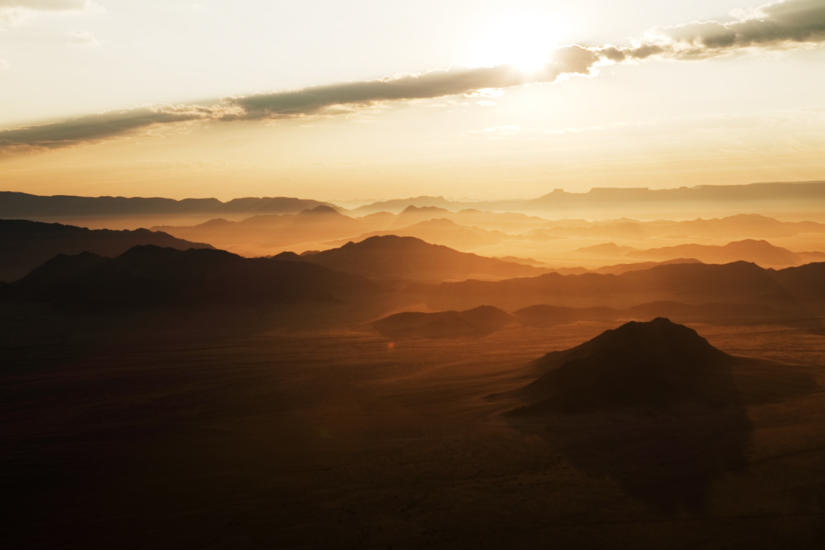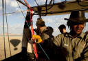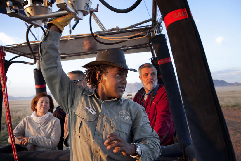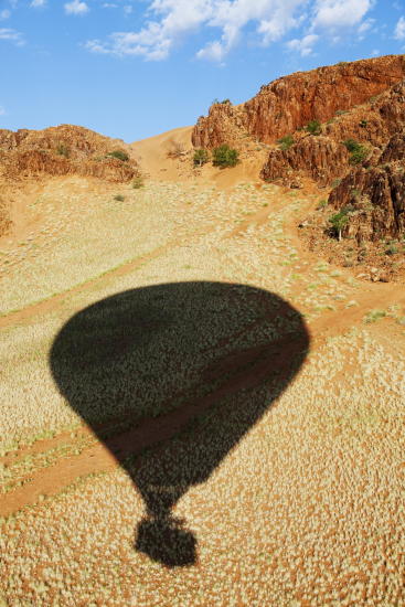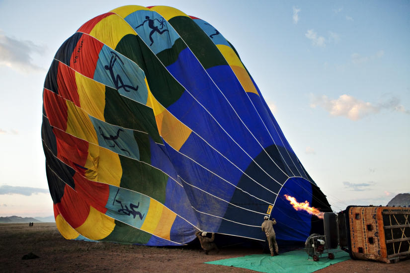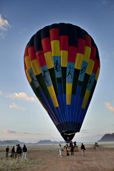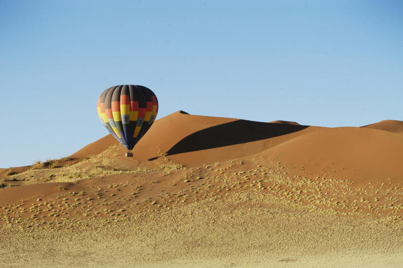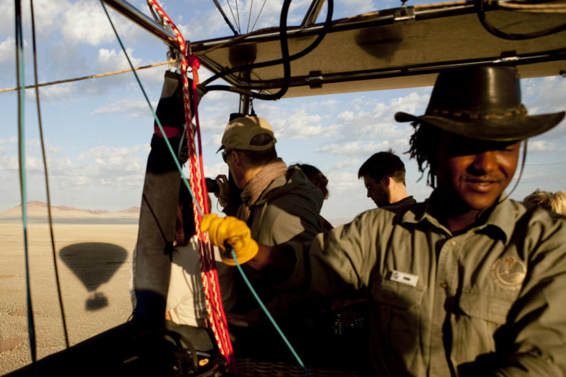 I en luftballong tusen meter over Namibiørkenen ser vi solas første stråler flomme over de enorme sanddynene.