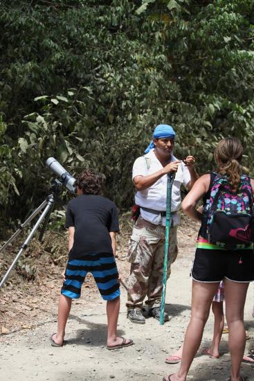 På ettermiddagen kommer det gjerne både flokker med store, fargerike papegøyer, og vakre tukaner med de voldsomme nebbene sine. De setter seg i trærne bak huset og «skravler».