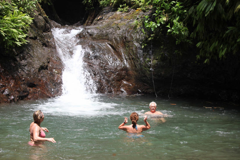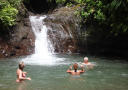 DUKKERT: Forfriskende dukkert på fotturen i Puntarenas. Over en fjerdedel av Costa Rica er vernet som nasjonalparker. I skogene her fins alt fra vakre sommerfugler og fargerike frosker, til slanger, dovendyr og apekatter. Foto: TOM HELGESEN