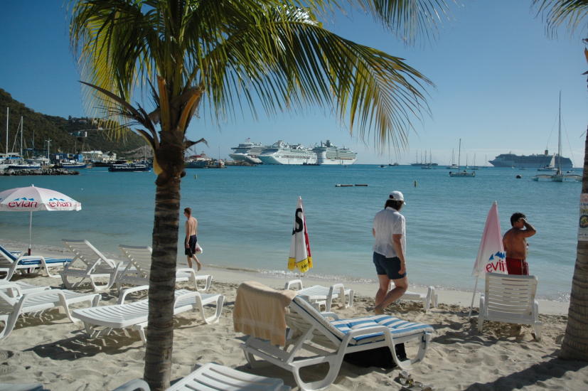 STRANDLIV: Når cruiseskipene legger til kai, som her i St. Maarten i Karibia, er veien kort til nærmeste strand. Foto: EIVIND PEDERSEN