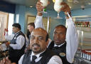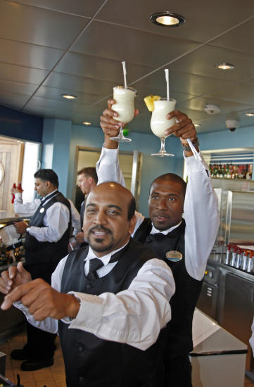 BOBLER: Når tusenvis av cruisegjester skal serveres champagne, er det alltid en stor jobb for servitørene å klargjøre alle glassene. Foto: EIVIND PEDERSEN