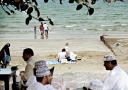 Langs strandpromenaden sitter folk fordypet i aviser, myntete og lavmælte samtaler.Her finner du kaffekjeden Costa, omanske tehus, og ved parkeringsplassen ligger også D'Arcys, et temmelig corny sted.