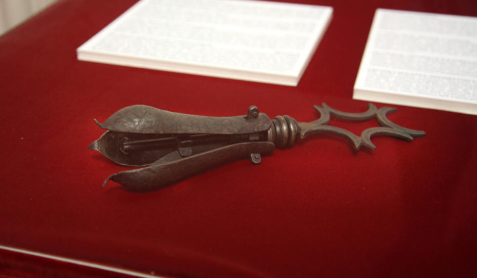 Smertene var så sterke at noen mistet forstanden, står det å lese på teksten som forklarer instrumentet.