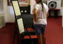- Men jeg vil ikke fortelle hva som er kopier og hvilke redskaper som er originale, sier karen i billettluka.